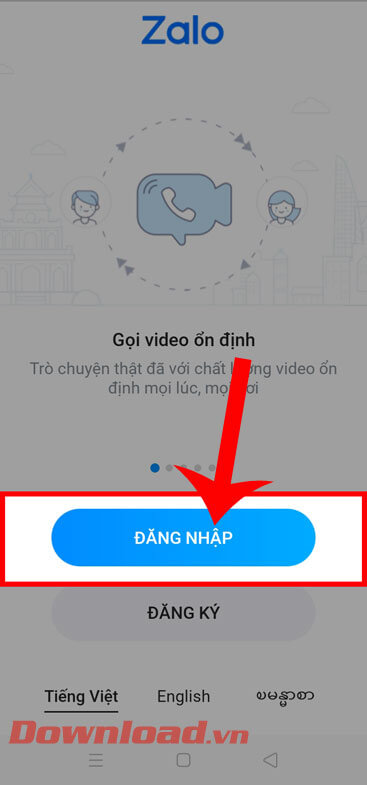 Bước 1: Đầu tiên, mở ứng dụng Zalo trên điện thoại của mình lên. Tại màn hình đăng nhập của ứng dụng, nhấn vào nút Đăng nhập.